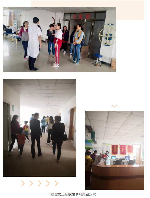 为激励医务工作者提高自身技能,更好地为患者服务,同时感谢员工及其家属对医疗工作的支持,集团公司授予获奖员工及其家属共同分享收获的喜悦,给予一等奖优秀员工携带四名家属、二等奖优秀员工携带两名家属共同赴青岛旅游的奖励。