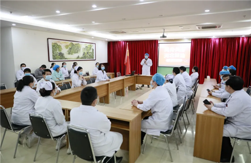 请战现场,石家庄平安医院党支部书记张少飞代表党支部对各位请战党员及职工表示感谢,同时号召各位党员进一步践行初心与使命,充分发挥共产党员的先锋模范带头作用。
