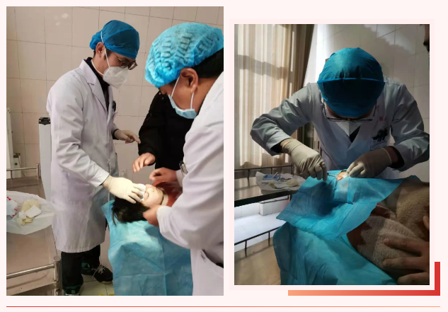 皮脂腺囊肿切除术刚结束,因意外受伤的10岁小男孩在家长的陪伴下慌忙就医,藁城区南董镇中心卫生院医生快速反应,冷主任从旁协助,紧急救治。