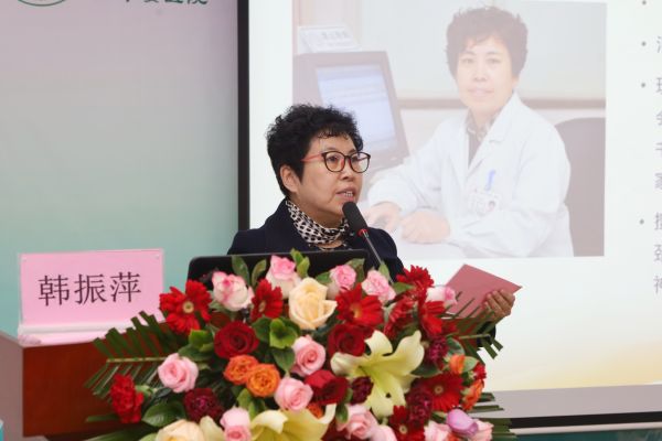 石家庄市物理医学与康复学分会主任委员韩振萍教授发言,她表示本次会议为大家搭建了一个分享经验、自由讨论的平台,希望通过学术探讨,充分总结、分享诊疗经验,促进各位医学同仁的交流,积极发挥康复医学对人类健康的作用,真正地做到让更多的患者回归家庭,回归社会,让他们过上有意义、有质量、有尊严的生活,也为石家庄市康复医疗事业的发展贡献力量。